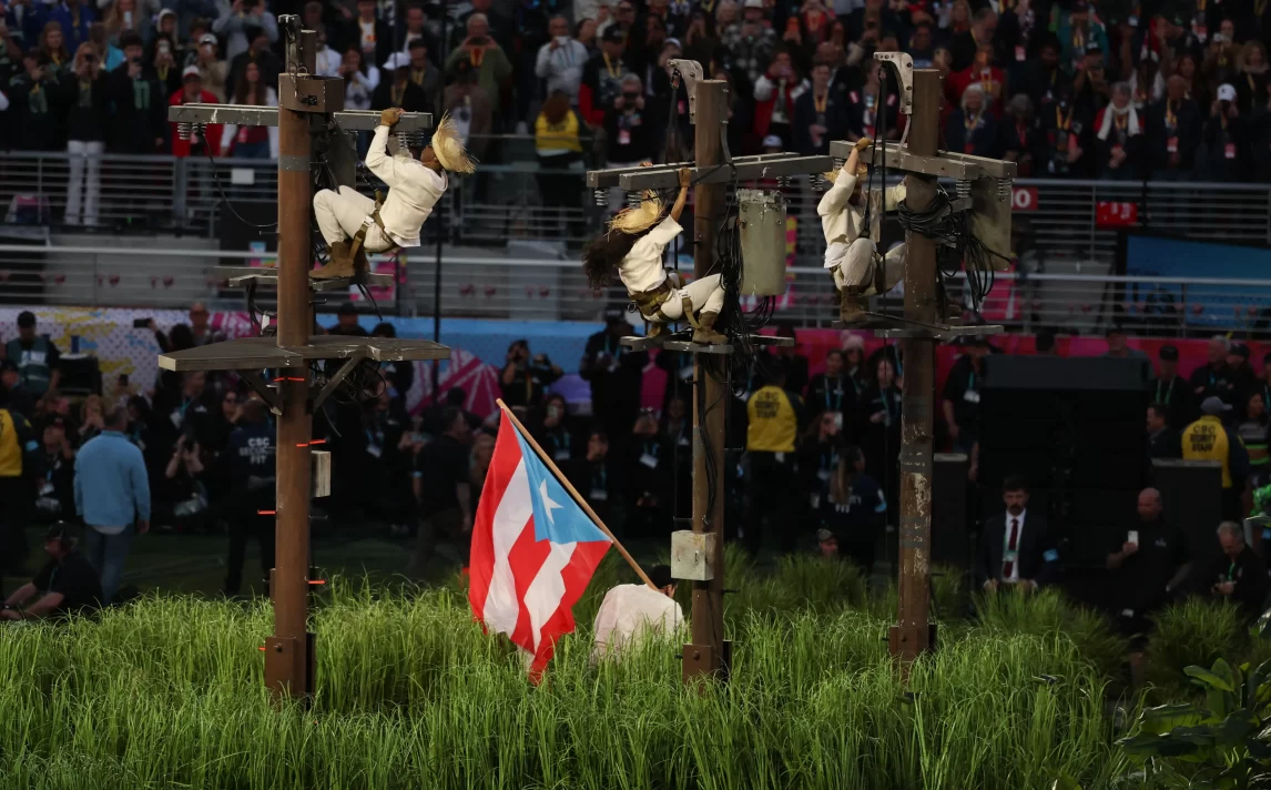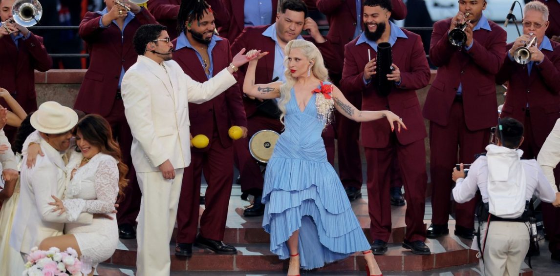 A lo largo de los 12 minutos y 50 segundos que duró el show, Bad Bunny alternó éxitos como “Baila sin miedo”, el “Baile inolvidable” y “Un verano en Nueva Yol”, donde incluso tuvo un espacio para la famosa Toñita y su reciente Grammy. En un momento de gran carga emotiva, el artista cayó en otro salón de la casa mientras sonaba la legendaria “La gasolina”, para luego seguir con “Voy a llevarte pa PR”. Entre cañas de azúcar y un inmenso cartel que rezaba “La única cosa más poderosa que el odio es el amor”, Benito lanzó un dardo directo a la industria: “Ahora todos quieren ser latinos, pero les falta sazón”.