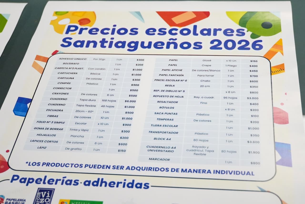 En una conferencia de prensa realizada en las Torres de Economía de Santiago del Estero, se presentó la canasta escolar 2026 con un listado detallado de precios acordados para útiles escolares, que estará vigente hasta el 31 de marzo en comercios adheridos de Capital y del interior provincial.