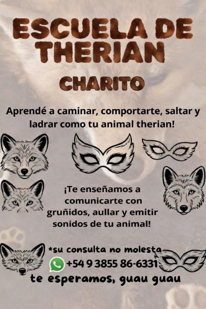“Te enseñamos a comunicarte con gruñidos, aullar y emitir sonidos de tu animal”, prometen en la escuela a la que llaman “Charito”. A continuación agregan un número al cual se pueden comunicar para aprender las bondades de ser therian.