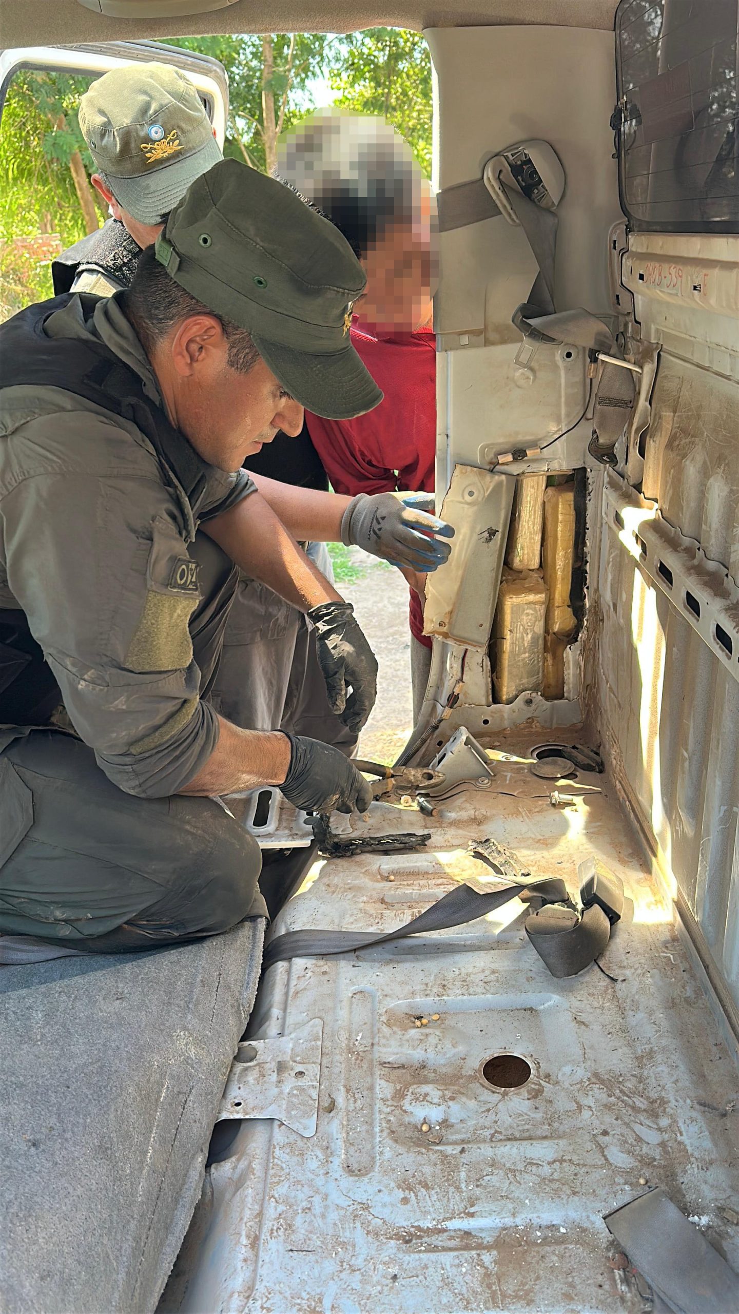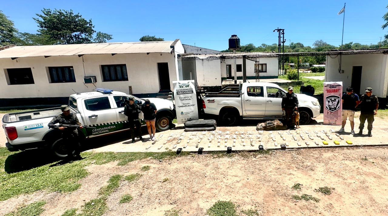 Los efectivos de la Sección “Embarcación” dependiente del Escuadrón 52 “Tartagal”, con el apoyo de la Unidad de Investigaciones Antidrogas “Aguaray”, mientras realizaban un control vial sobre la Ruta Nacional N° 34, a la altura del kilómetro 1.344, próximo a la localidad de Embarcación, detuvieron la marcha de un vehículo Toyota Hilux que circulaba en sentido Norte-Sur, en el que viajaba un grupo familiar compuesto por dos adultos y dos menores de edad.