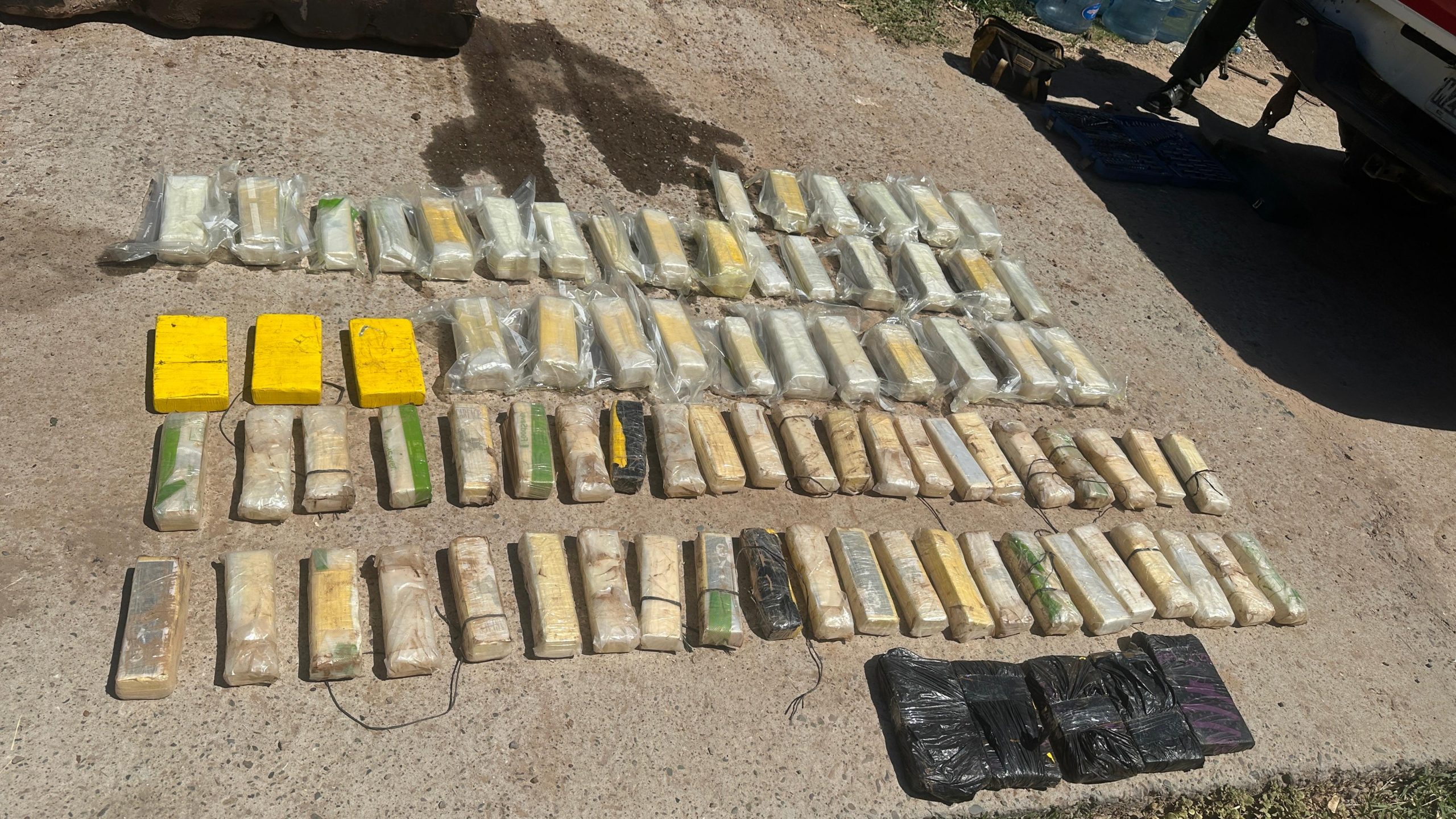 Eso derivó en el hallazgo de 85 paquetes rectangulares, en los paneles de las puertas traseras, en un doble fondo de las columnas posteriores del vehículo y en el interior del tanque de combustible, que contenían una sustancia blancuzca.
