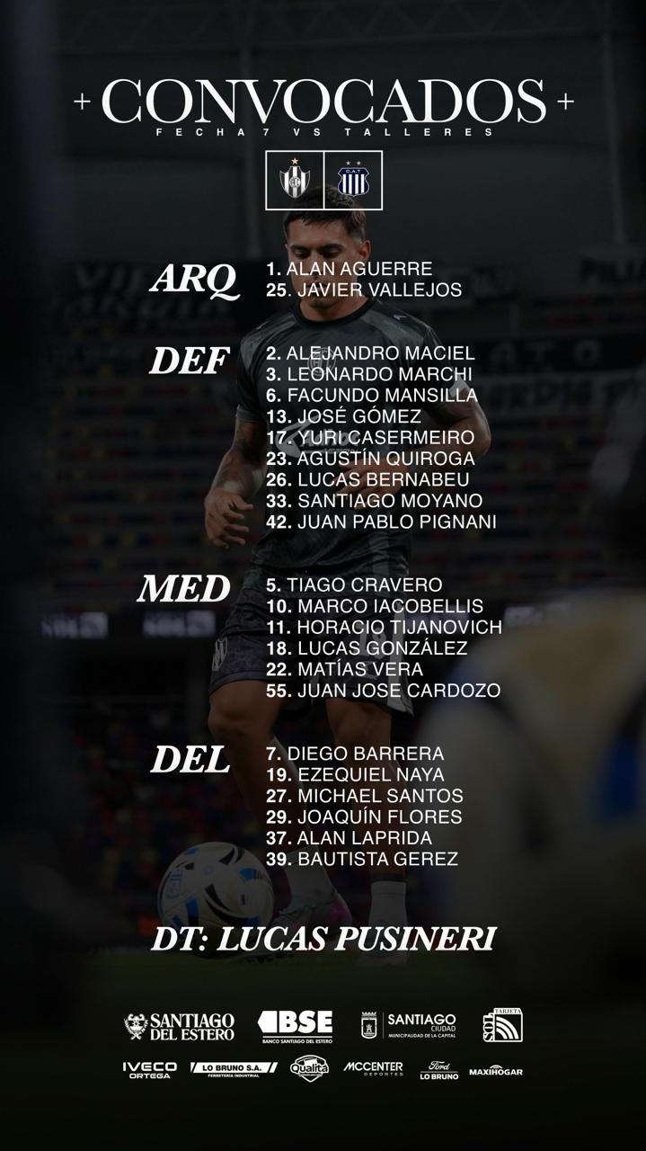 El Ferroviario difundió la lista de convocados para el encuentro ante la T cordobesa donde el DT Lucas Pusineri se juega bastante.