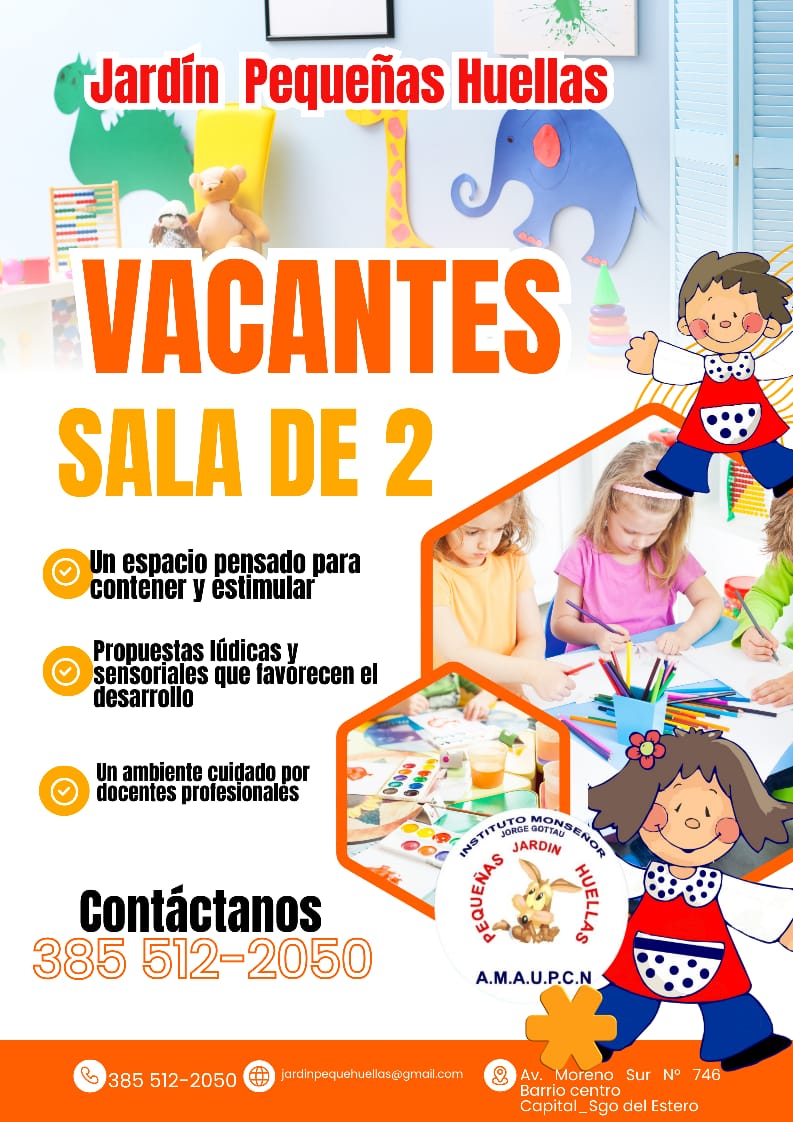 Los interesados pueden comunicarse al 385 512-2050 o vía correo electrónico a jardinpequehuellas@gmail.com. El establecimiento se encuentra en Av. Moreno Sur N° 746, barrio Centro, en la ciudad de Santiago del Estero.