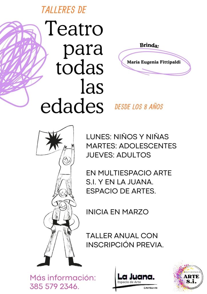 Con el inicio de marzo, quedaron abiertas las inscripciones para los talleres anuales de teatro destinados a niños, adolescentes y adultos en la ciudad de Santiago del Estero. La propuesta estará coordinada por la actriz y educadora María Eugenia Fittipaldi y se desarrollará en distintos espacios culturales de la capital.
