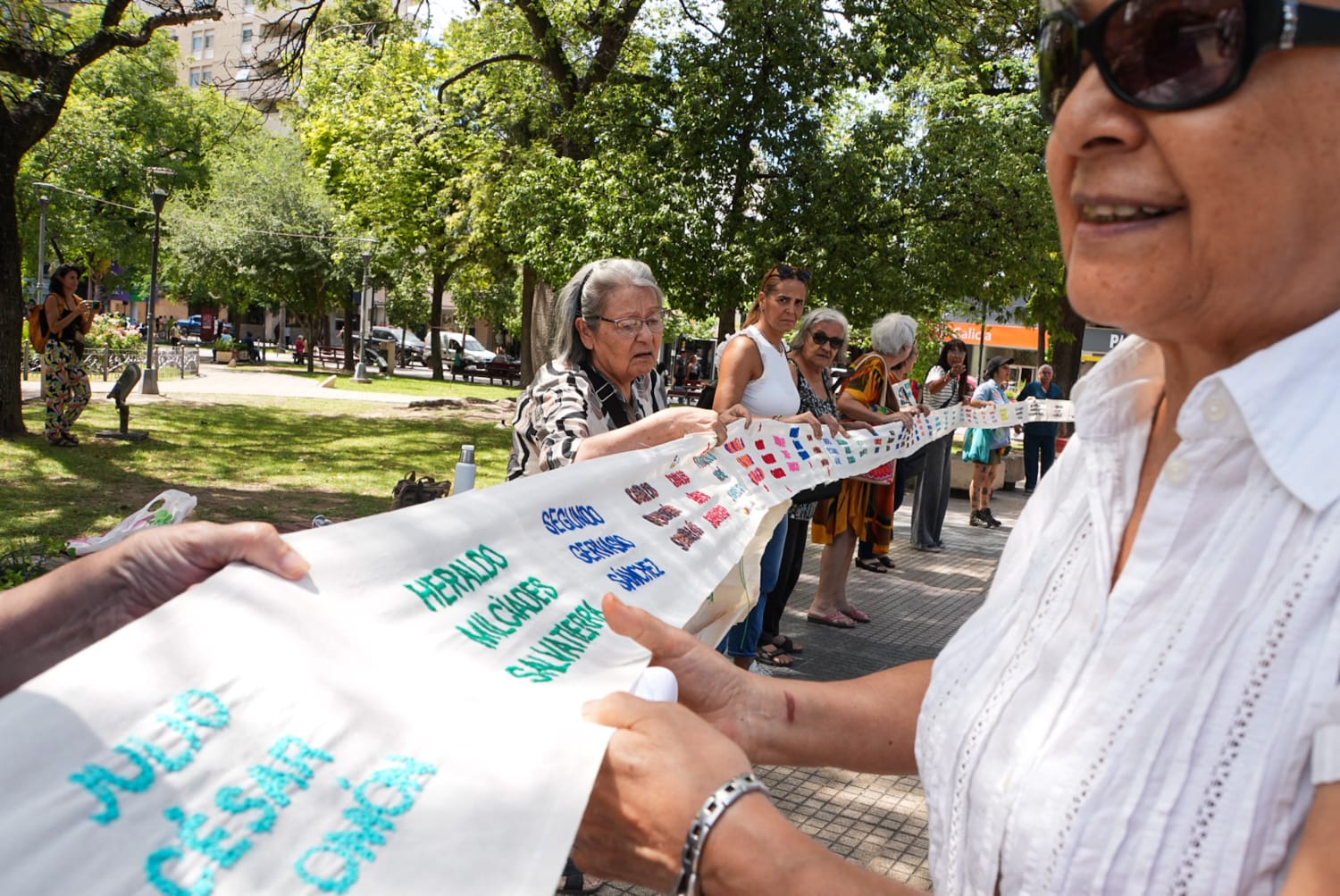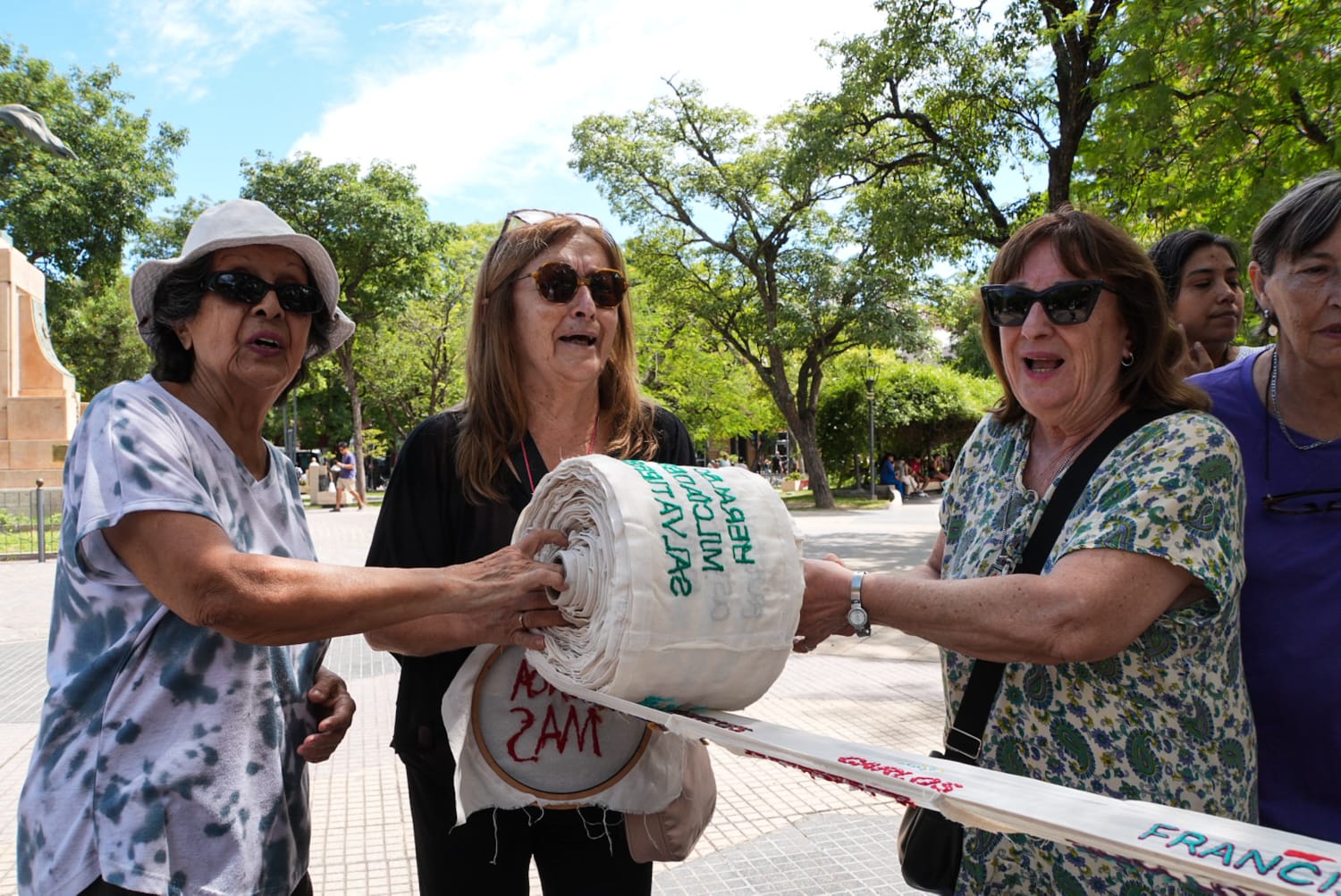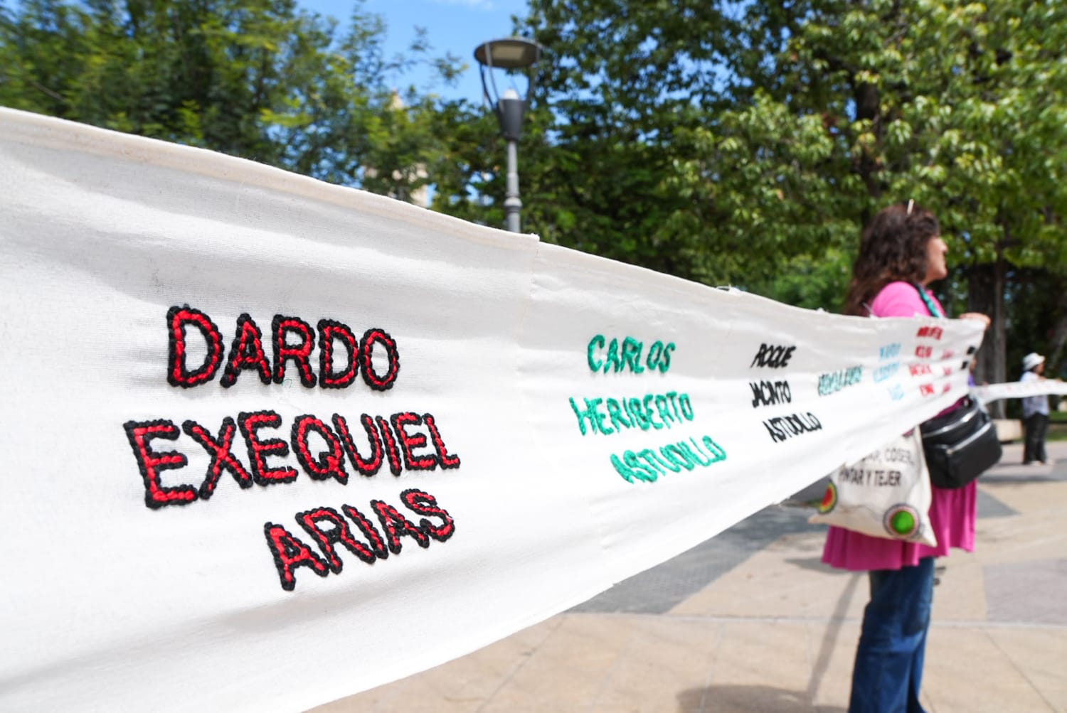 Integrantes de la agrupación “Colectiva Bordando Luchas Santiago del Estero” presentaron un rollo bordado con los nombres de personas desaparecidas de la provincia durante la última dictadura militar.