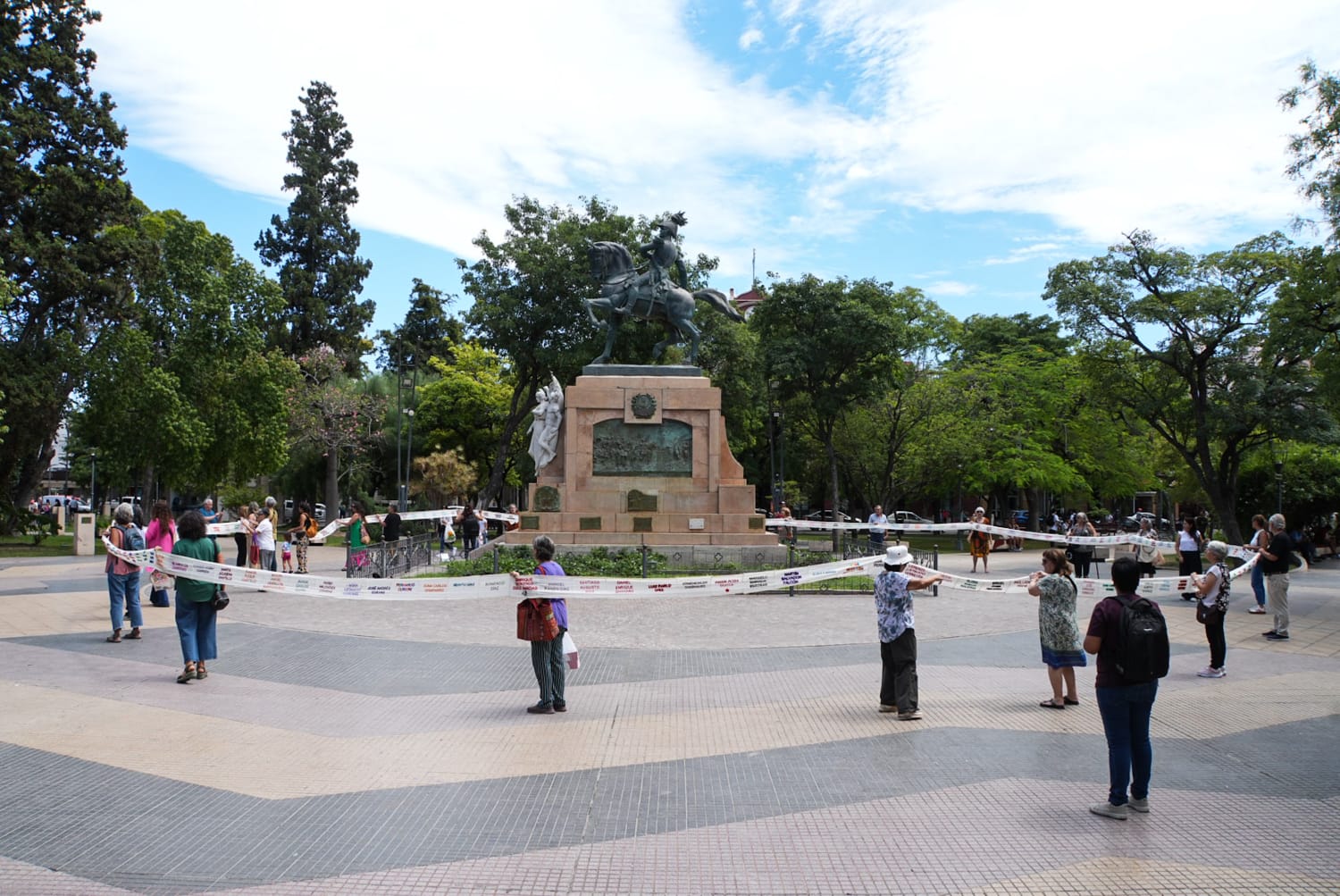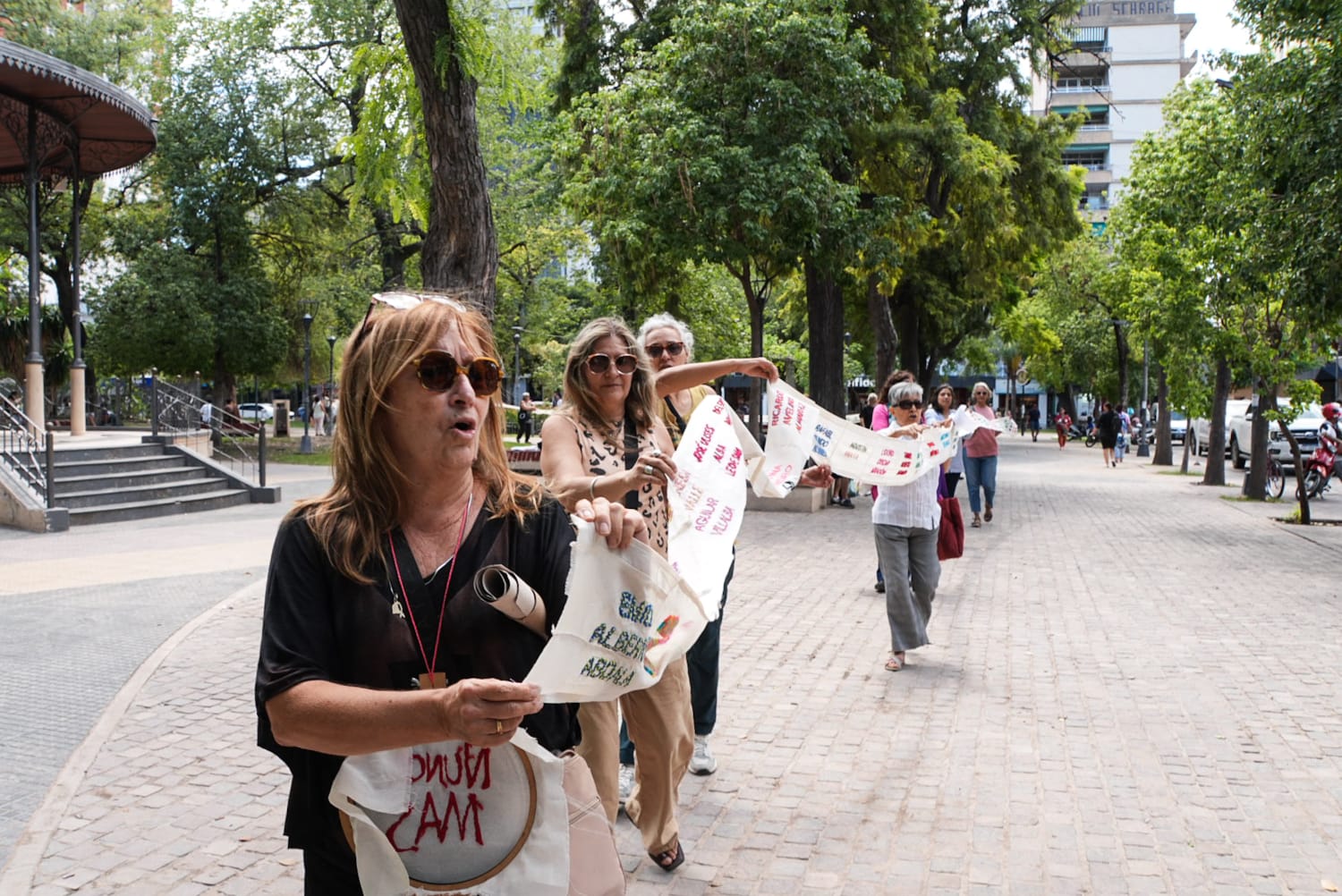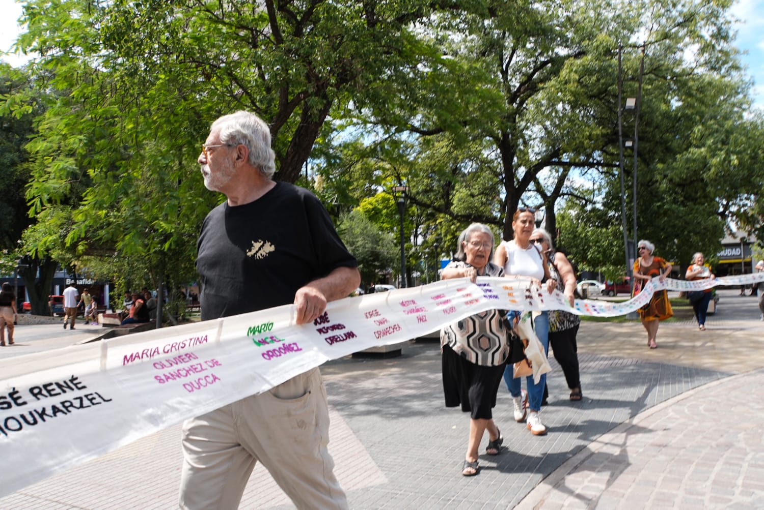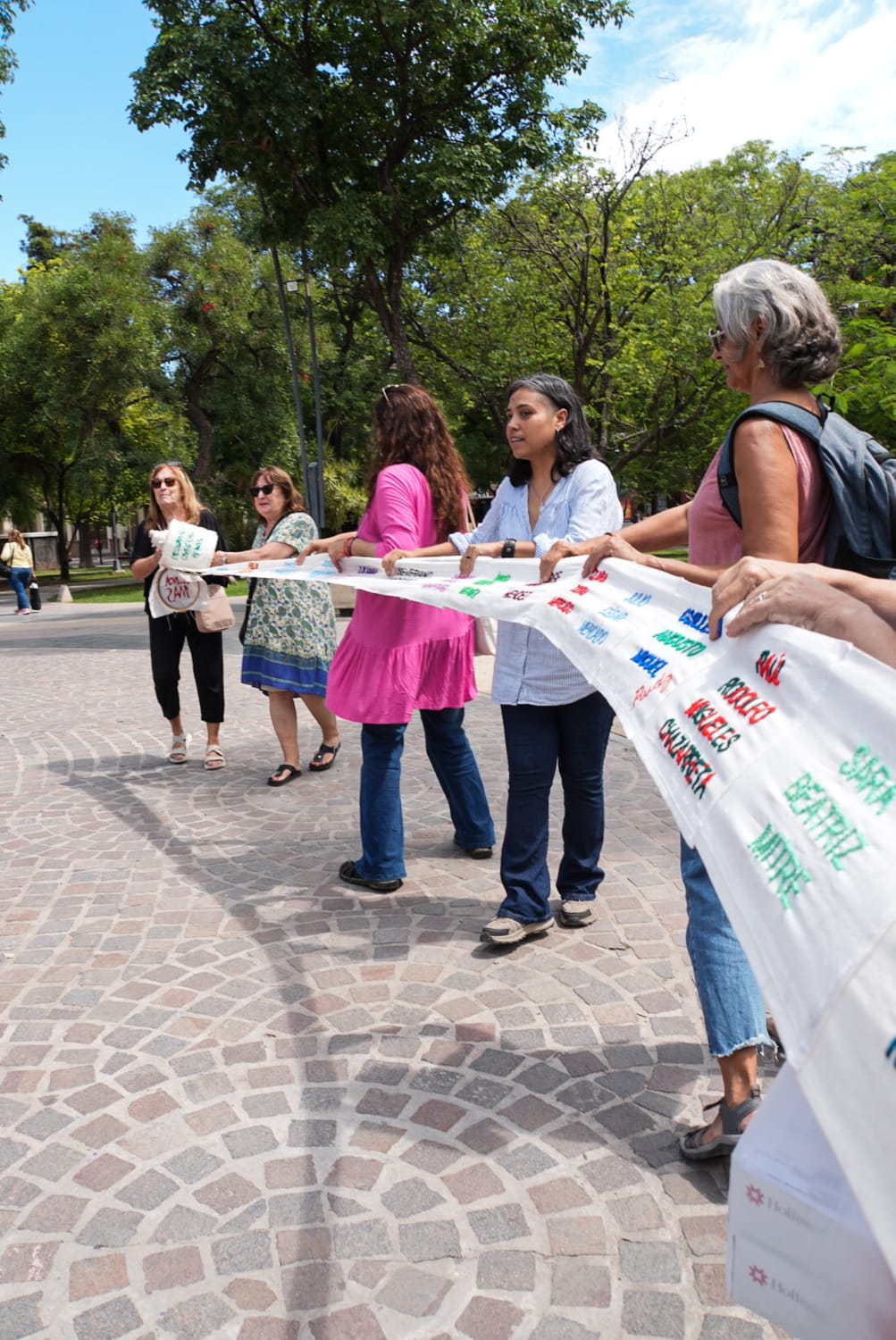 Integrantes de la agrupación “Colectiva Bordando Luchas Santiago del Estero” presentaron un rollo bordado con los nombres de personas desaparecidas de la provincia durante la última dictadura militar.