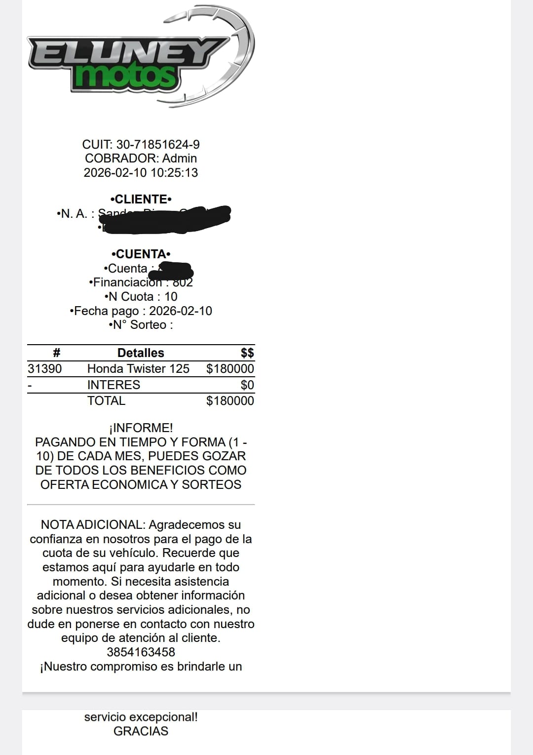 Otro “cliente” de “Eluney Motos” indicó: “me tenían que entregar la moto en la segunda cuota, pero por una cosa u otra no lo hacían, mientras tanto seguía pagando y luego de este último pago no me pasaron el comprobante, nadie responde el teléfono, en el lugar ya no hay nada, desaparecieron”.
