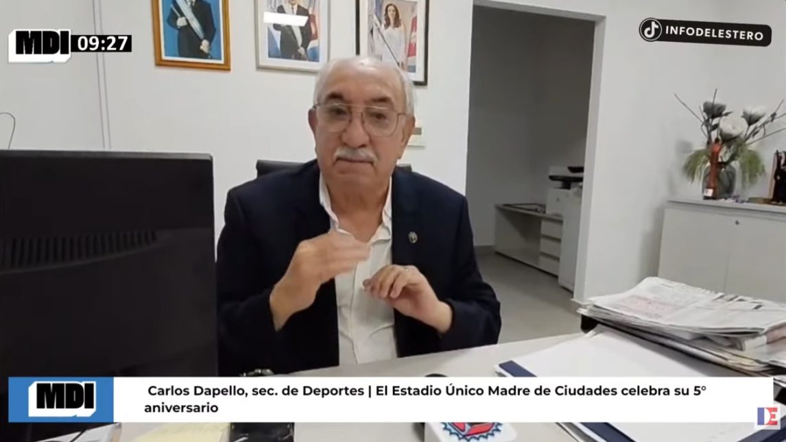 En el marco del especial de La Mañana de Info por el quinto aniversario del Estadio Único Madre de Ciudades, el secretario de Deportes de la provincia, Carlos Dapello, dialogó con el equipo del programa y repasó el crecimiento que significó esta obra para Santiago del Estero.