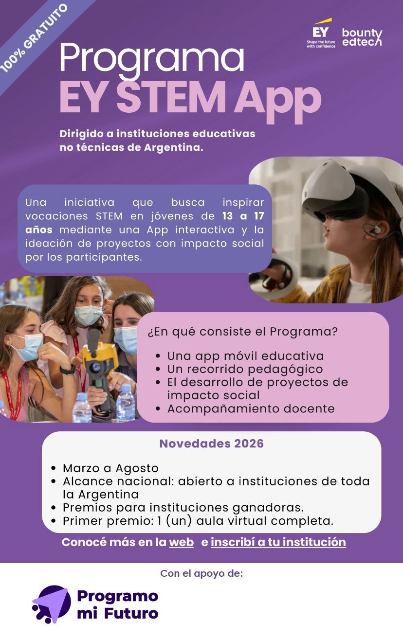 Desde el Programa Mi Futuro lanzaron la convocatoria para participar del Programa EY STEM App 2026, una iniciativa educativa gratuita destinada a instituciones escolares no técnicas de todo el país y orientada a estudiantes de entre 13 y 17 años.