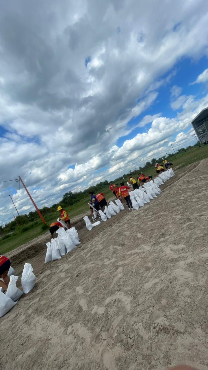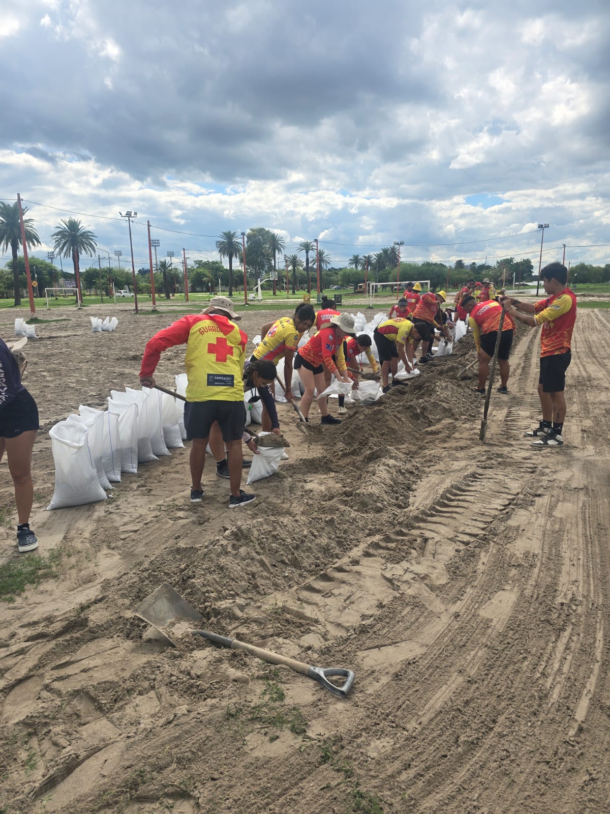 Según se informó, las bolsas de arena son utilizadas para conformar barreras de contención en sectores donde el nivel del río se encuentra más elevado, con el objetivo de reforzar las defensas existentes.