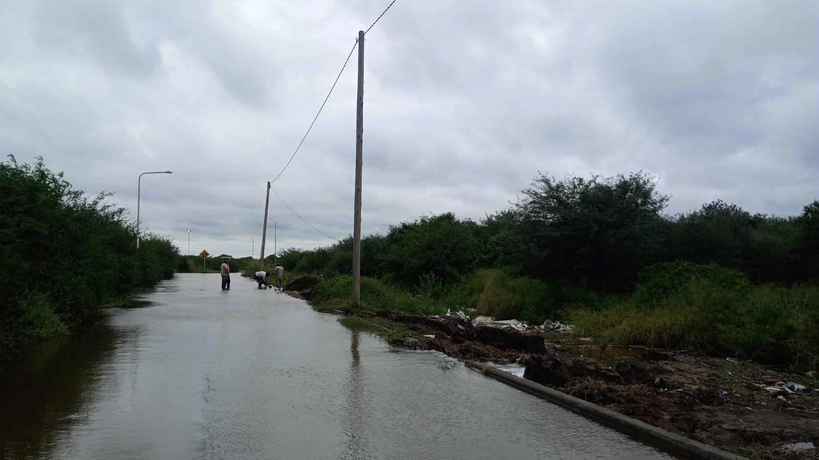 En el lugar, algunos habitantes accedieron a retirarse, pero otros optaron por quedarse para intentar proteger sus hogares ante el avance del agua. En medio de la tensión y la incertidumbre, un grupo de vecinos tomó la decisión de romper el cordón cuneta de la calle vecinal para desviar el cauce, ya que el agua prácticamente cubría la calzada y amenazaba con ingresar a las viviendas.