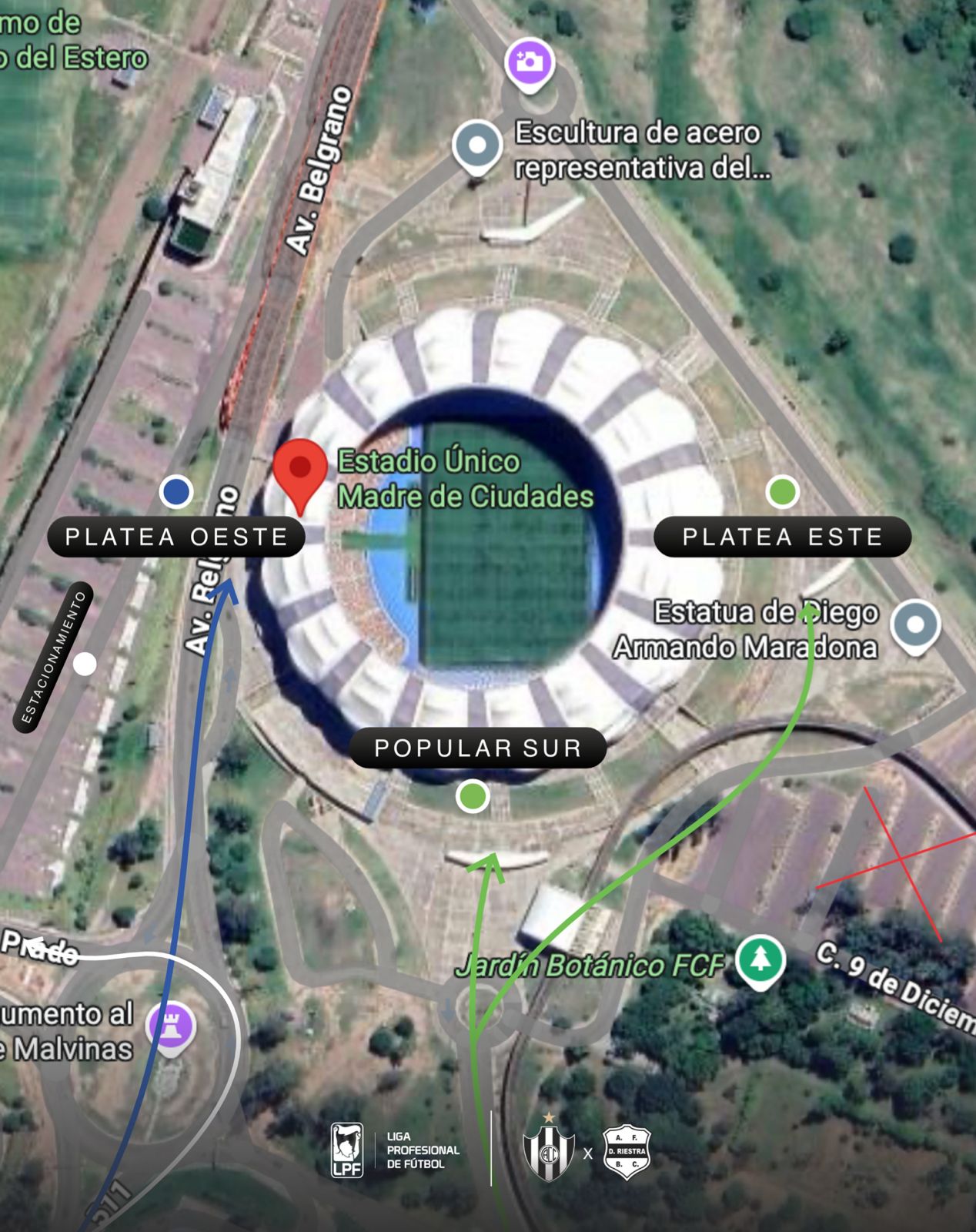 Popular Sur y Platea Este: ingreso únicamente por Av. Roca.