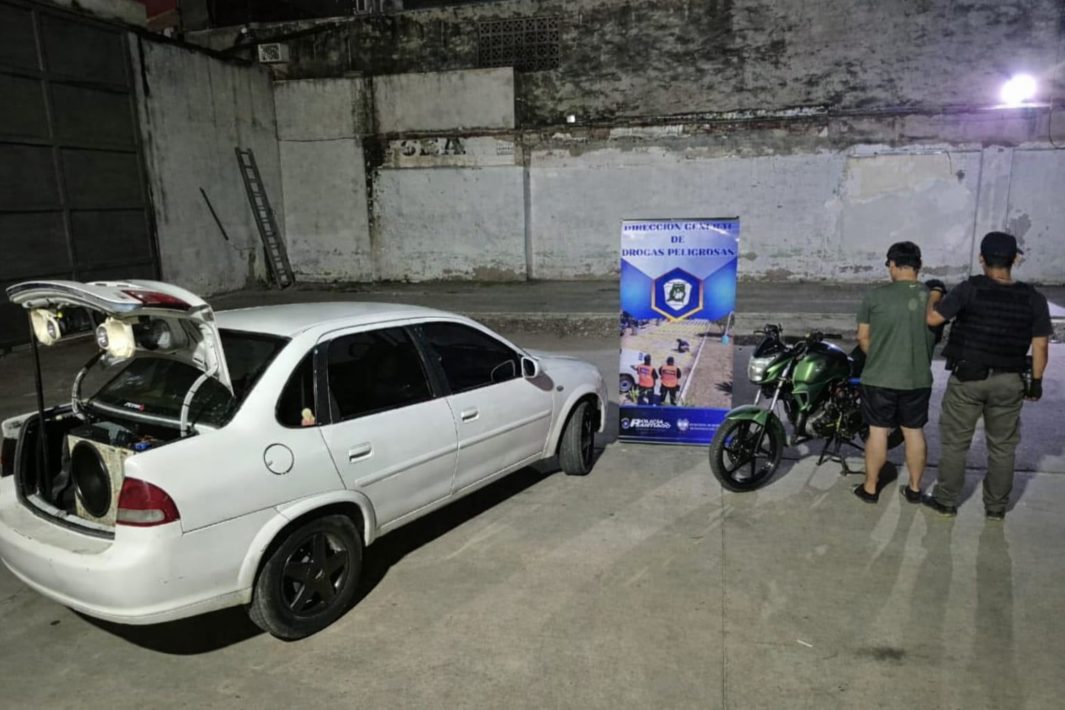 Durante el procedimiento, Dirección General de Drogas Peligrosas secuestró un total de 53,8 gr. de cocaína, 61 semillas de cannabis, un automóvil, un arma de fuego y material utilizado para el fraccionamiento y venta.