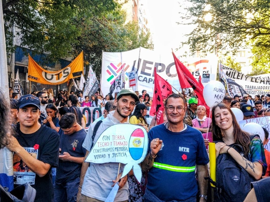 La columna santiagueña compartió la marcha junto a importantes figuras de la política nacional como los diputados del Frente Fuerza Patria Peronista y referentes del Frente Patria Grande entre los que se destacaron Juan Grabois Natalia Zaracho y Fernanda Miño además del legislador Itaí Hagman en un marco de unidad donde las comunidades y barrios organizados en los 25 departamentos de la provincia de Santiago del Estero levantaron su voz para exigir respuestas sobre el paradero de los desaparecidos y reafirmar el compromiso innegociable con el Nunca Más.
