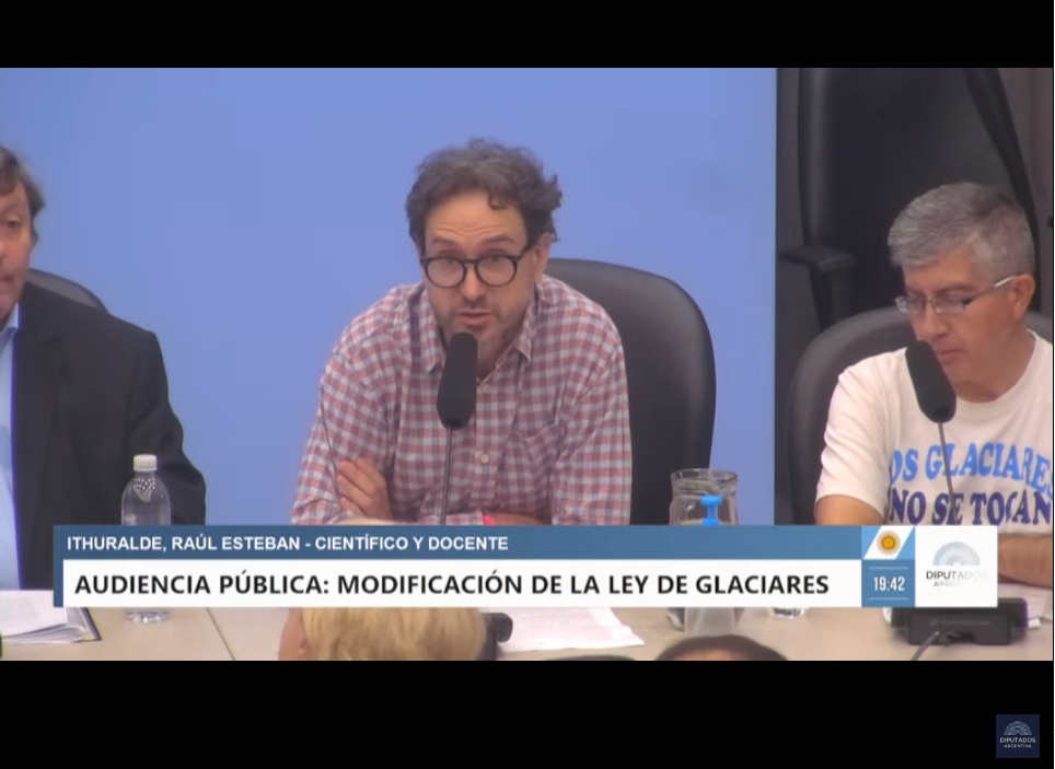 Raúl Esteban Ithuralde, es profesor de la Universidad Nacional de Santiago del Estero, científico e investigador del Instituto de Estudios para el Desarrollo Social y coordinador del grupo Educación, Ambiente, Hábitats y Territorios y en el día de hoy participó de la audiencia pública convocada para debatir la modificación de la Ley de Glaciares.