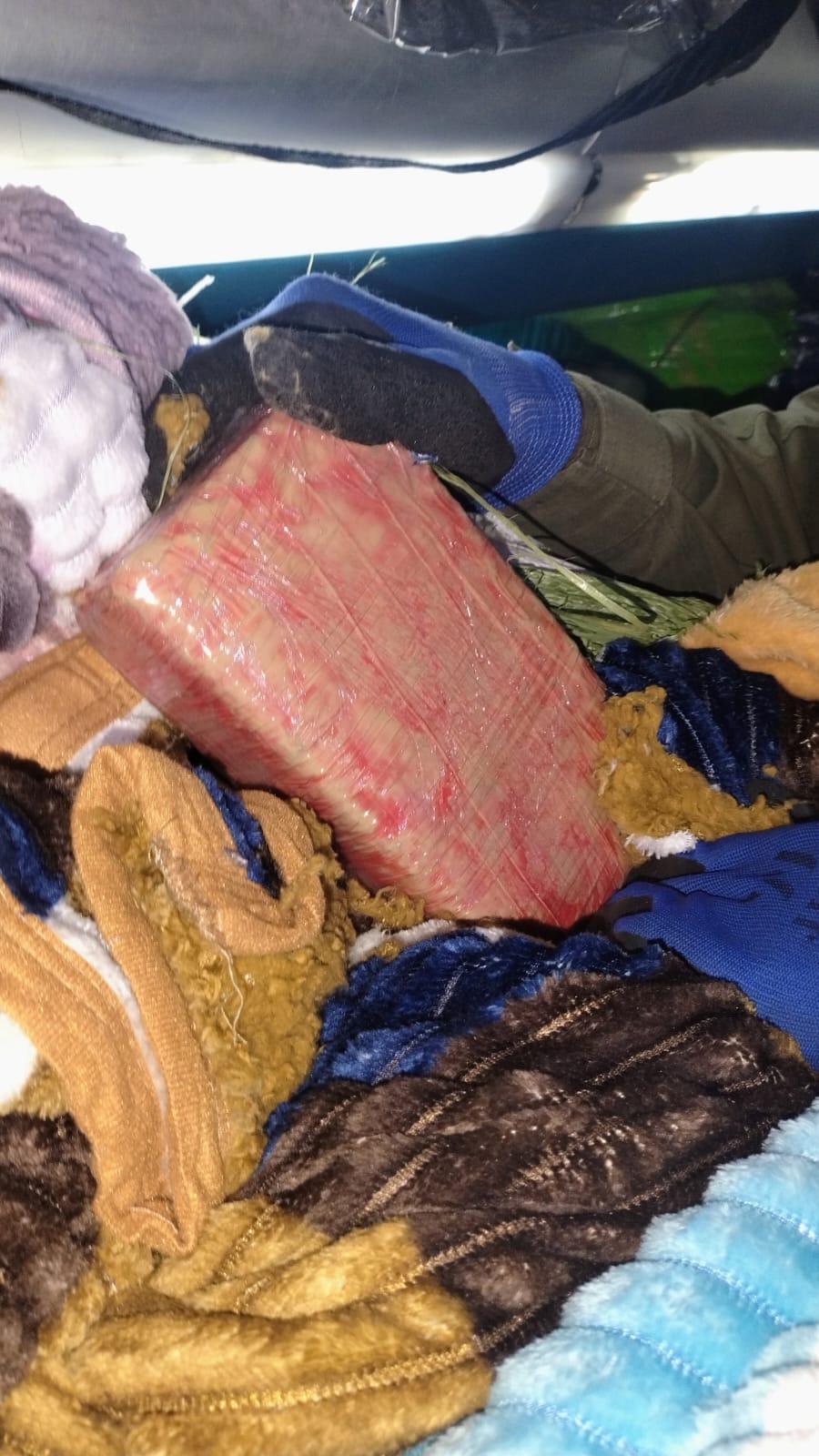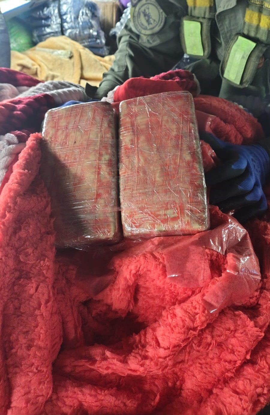 Al revisar el contenido, hallaron varios paquetes envueltos en telas, algunos de ellos embadurnados con grasa de motor y recubiertos con film, una maniobra habitual para intentar evitar la detección de estupefacientes.