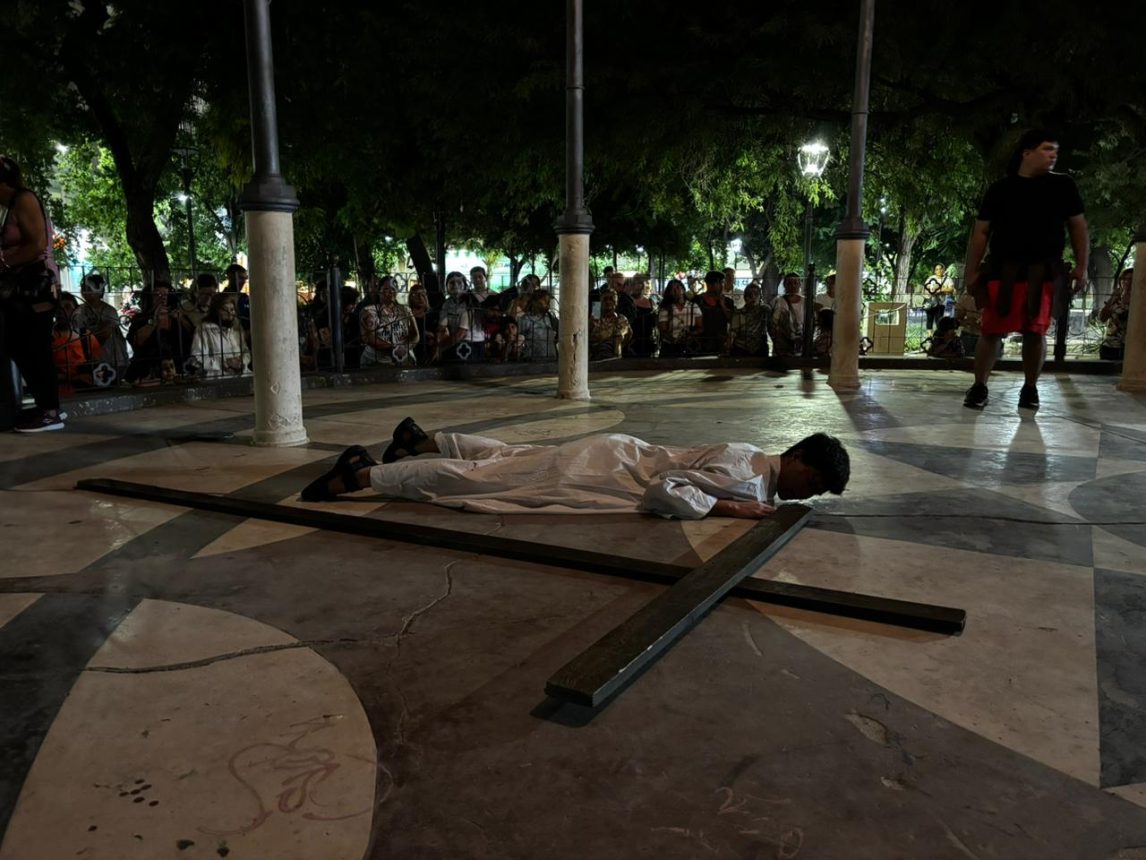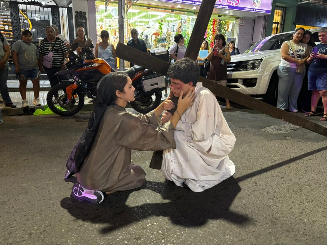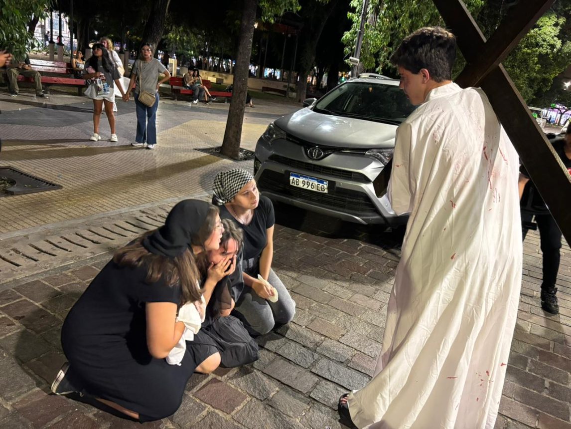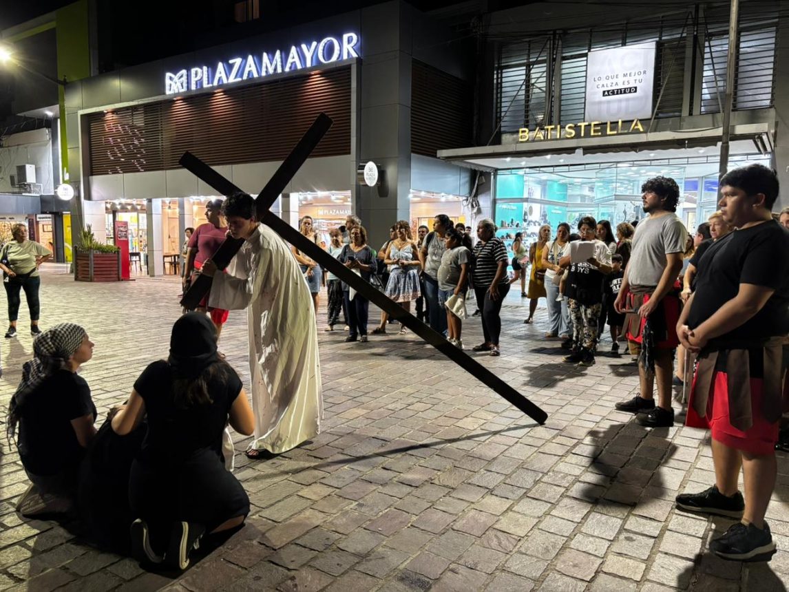 La feligresía de la Iglesia La Merced salió a las calles de la ciudad para llevar el mensaje evangélico al espacio público. Con un despliegue de actores y vecinos que personificaron los momentos cruciales de la Pasión, la representación recorrió las arterias principales de la ciudad. El “via crucis viviente”, adaptado para mostrar la vida y el sacrificio de Cristo, permitió que grandes y chicos se detuvieran a contemplar las estaciones de la cruz en un clima de profundo respeto, finalizando el recorrido en Plaza Libertad.