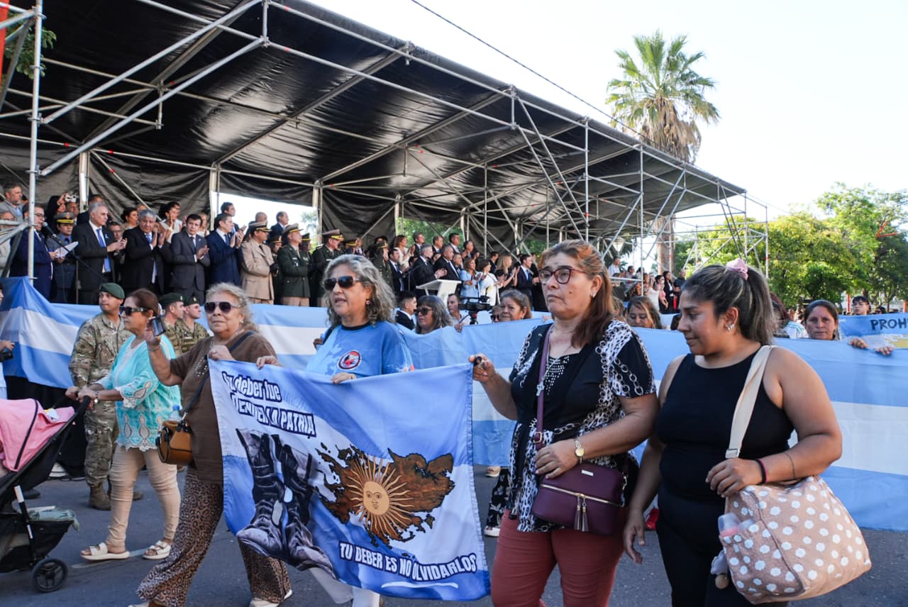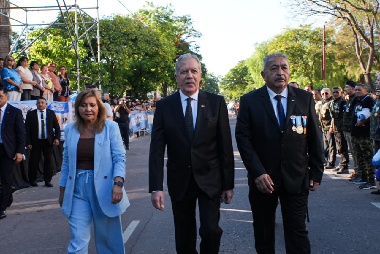 El tradicional desfile de fuerzas armadas, de seguridad y excombatientes fue el momento central del acto por el Día del Veterano y de los Caídos en la Guerra de Malvinas, realizado este jueves. La ceremonia estuvo encabezada por Elías Suárez, acompañado por Víctor Araujo, Norma Fuentes, ministros, legisladores, representantes del Poder Judicial, autoridades académicas y miembros de organizaciones civiles.