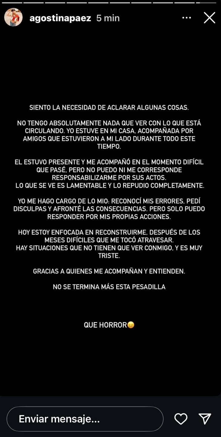 Agostina Páez se desligó del video viral de su padre y repudió lo ocurrido: el descargo en Instagram