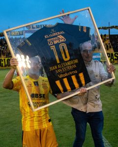 Además, la jornada tuvo un espacio especial para destacar la trayectoria dentro del club. El capitán aurinegro, Juan Ignacio Alesandroni, fue homenajeado por sus 10 años defendiendo la camiseta, recibiendo una casaca enmarcada como símbolo de reconocimiento a su compromiso, entrega y sentido de pertenencia.
