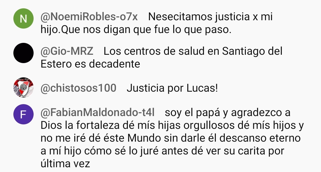 En medio del dolor que atraviesa la familia de Lucas Maldonado, sus padres se expresaron por primera vez de manera pública a través de comentarios en la transmisión en vivo de Info del Estero, donde dejaron mensajes cargados de angustia y un fuerte pedido de justicia.