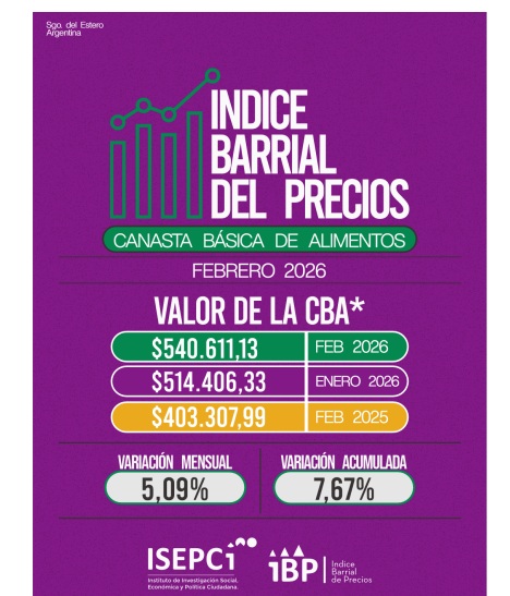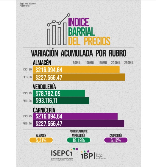 El Instituto de Investigación Social, Económica y Política Ciudadana (ISEPCi) advirtió que los alimentos continúan aumentando en los barrios de Santiago del Estero y La Banda, mientras el consumo sigue en caída.