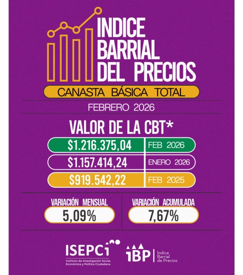 De acuerdo al relevamiento de febrero de 2026, una familia tipo necesitó $540.611 para cubrir únicamente la Canasta Básica Alimentaria y no quedar por debajo de la línea de indigencia.