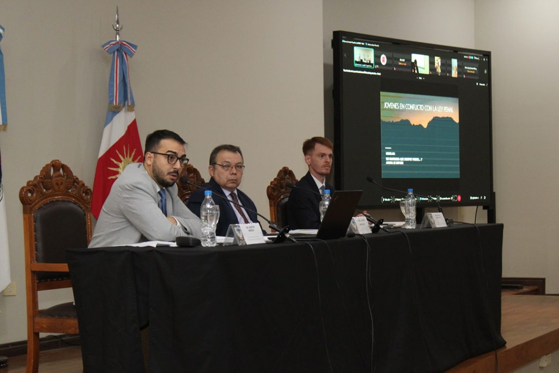 En primer término, compartieron el estrado los Dres. Gastón Merino, juez de Control y Garantías con Competencia Penal Juvenil; Raúl Santucho, vocal del Tribunal de Juicio Oral en lo Penal y Manuel Santillán, director de Nexo-Centro de Abordaje y Responsabilidad Adolescente de Santiago del Estero.