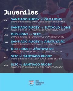 La actividad de las divisiones juveniles, contará con encuentros en distintas categorías que se disputarán en las canchas de Santiago Rugby, Old Lions y Santiago Lawn Tennis.