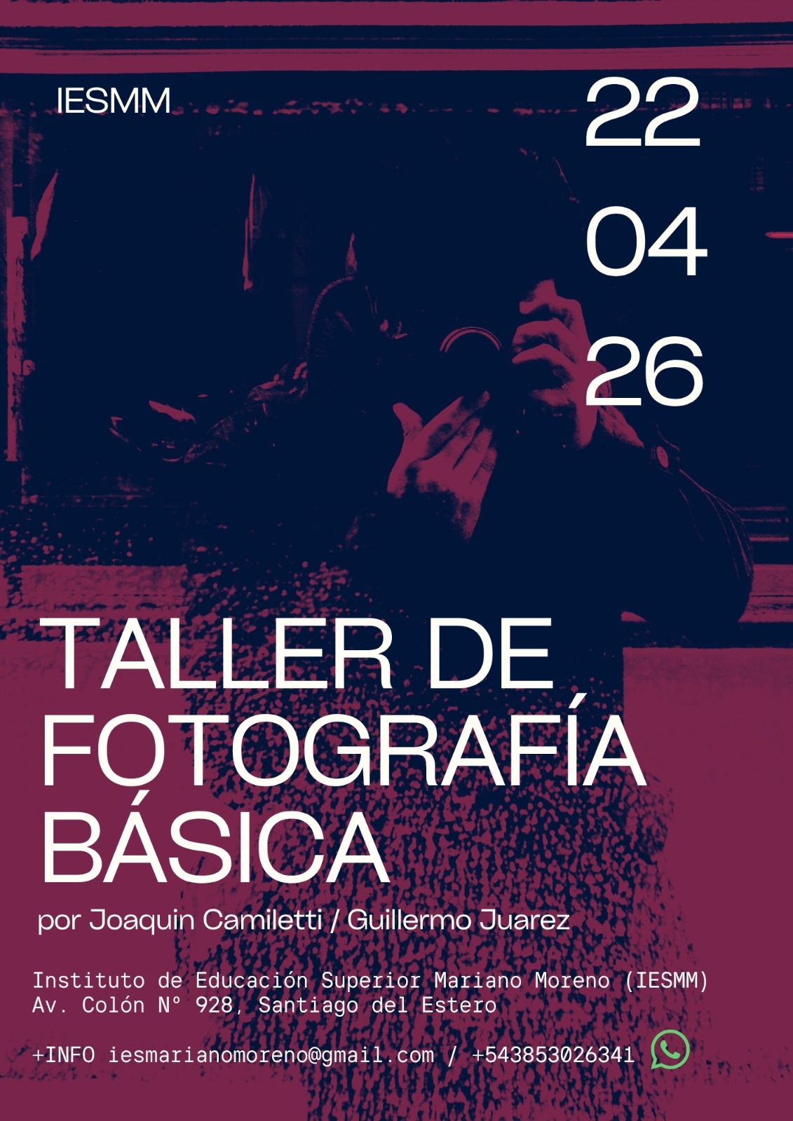 El Instituto de Educación Superior Mariano Moreno (IESMM) abrió las inscripciones para el Taller de Fotografía Básica (Intensivo), una propuesta presencial que comenzará el miércoles 22 de abril, con una duración de 8 encuentros semanales de dos horas (de 16:00 a 18:00), en su sede de Av. Colón (S) 928, Santiago del Estero. Los cupos son limitados.