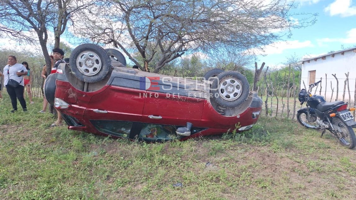 Un grave siniestro vial se registró este jueves alrededor de las 14:00 en la localidad de Los Gómez, en el departamento Banda. Un automóvil, en el que viajaban cinco ocupantes, protagonizó un terrible vuelco: tres de ellos resultaron heridos de gravedad.