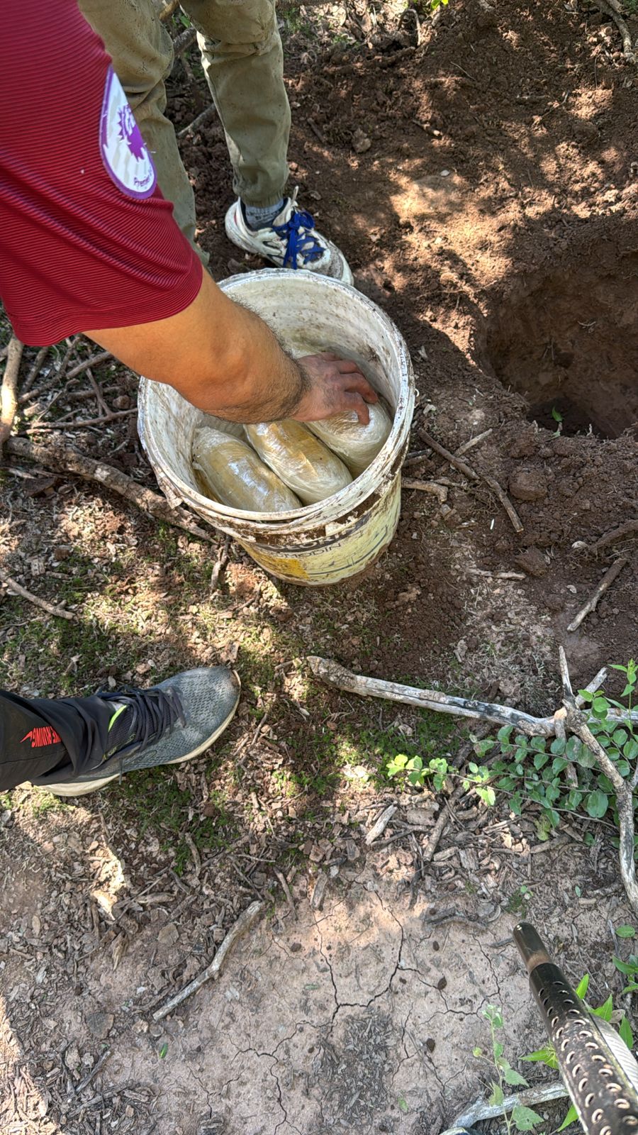 Con orden judicial, se concretaron allanamientos en la ciudad Capital y en Monte Quemado. En uno de los domicilios, los efectivos encontraron dos tachos de pintura enterrados, donde había paquetes con más de 6 kilos de marihuana.