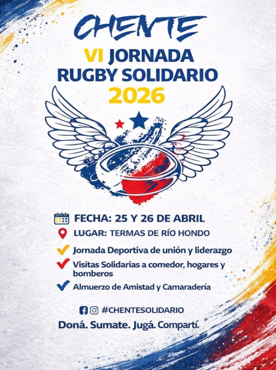 Se trata de la XI Jornada de Rugby Solidario, que se realizará el 25 y 26 de abril en Las Termas de Río Hondo. La iniciativa nació como una forma de recordar a “Chente” en el día de su cumpleaños, combinando dos pilares que lo representaban: la amistad y el rugby, deporte que practicó en el club Old Lions, donde dejó una huella por sus valores y su carisma.